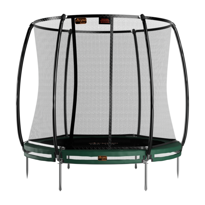 Avyna Pro-Line InGround trampoline met veiligheidsnet 10 Ø305 cm – Groen      Deze ronde InGround (ingraaf) trampoline inclusief veiligheidsnet heeft een diameter van 3,05 meter en is hiermee een mooi formaat voor iedere tuin. De trampoline is gemaakt van hoogwaardig en duurzaam materiaal. Met deze trampoline ben je gegarandeerd van jarenlang springplezier!De trampoline (305 cm in doorsnee) is voorzien van een Royal Class veiligheidsnet voor optimale veiligheid, een groene trampoline rand, dubbel gegalvaniseerde veren en een soepele springmat. De stevige rand van de trampoline dekt de veren volledig af en blijft daarnaast netjes liggen bij iedere sprong. De flap van het randkussen valt helemaal over de open ruimte aan de zijkant (20 cm) heen. Zo kan er niets onder de trampoline terecht komen. Ook is de trampoline rand voorzien van luchtroosters voor een optimaal spring comfort. Een super trampoline dus!In tegenstelling tot onze opbouw trampolines zijn InGround (20 cm boven de grond) en FlatLevel (volledig gelijk met de grond) trampolines zijn steeds populairder. Het frame van de trampoline wordt verwerkt in de grond en hiermee maak je de trampoline een geheel met je tuin. Dit heeft een strakke uitstraling! Daarnaast zijn dit soort trampolines ook nog een super veilig vanwege de lage op- en afstap.Al onze Avyna Pro-Line trampolines worden zelf ontworpen en geproduceerd in onze eigen fabriek in Vietnam. Met een Avyna Pro-Line trampoline haal je kwaliteit, veiligheid en duurzaamheid in huis. Dankzij de zware kwaliteit materialen hebben onze trampolines een enorm lange levensduur. Dit is zeker iets waar we trots op zijn. Om die reden bieden we, in tegenstelling tot andere trampoline merken dan ook levenslangs garantie op het frame van de trampoline. Bovendien zijn onze trampolines uitstekend afgewerkt en besteden we veel aandacht aan de kleine details, zoals de stiksels. Dit bij elkaar opgeteld, zorgt ervoor dat Avyna Pro-Line trampolines tot het hoge segment behoren. Uiteraard voldoet ons assortiment trampolines aan de laatste veiligheidseisen. In Amerika zijn ze zelfs als beste getest.