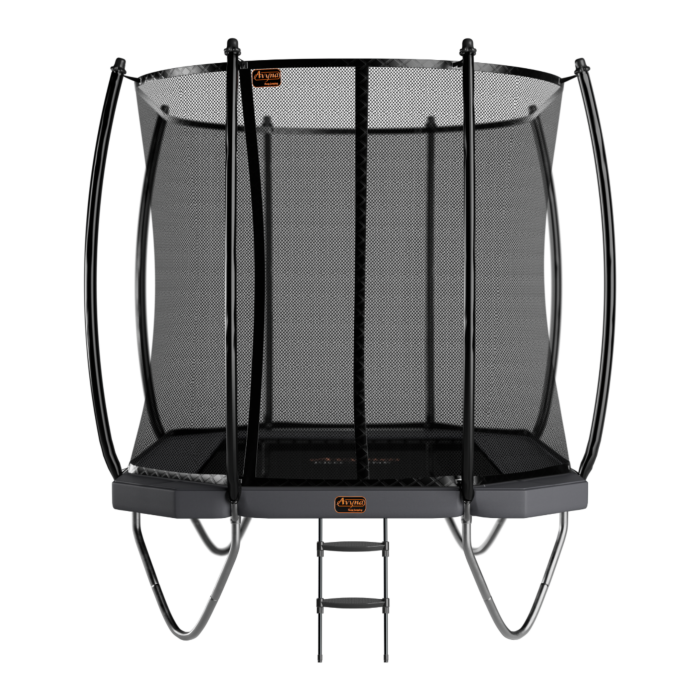 Avyna Pro-Line trampoline met veiligheidsnet 380 x 255 cm (238) – GrijsDeze opbouw trampoline inclusief veiligheidsnet behoort tot een van de grotere modellen Avyna Pro-Line trampolines. De trampoline is 3,80 meter lang en 2,55 meter breed. Veel ruimte om te springen dus! Daarnaast is de trampoline 86 cm hoog. Een rechthoekige trampoline neemt over het algemeen minder ruimte in dan een ronde trampoline. Deze rechthoekige trampoline is dus perfect als je optimaal gebruik wil maken van de ruimte in de tuin. Onze trampolines behoren tot het hoge segment trampolines. De trampoline is gemaakt van hoogwaardige kwaliteit materiaal en is uitstekend afgewerkt door middel van veel aandacht voor de kleine details zoals de stiksels. Deze trampoline is voorzien van een Royal Class veiligheidsnet, heeft een stevige grijze trampoline rand, dubbel gegalvaniseerde veren, een soepele springmat én een gratis trapje!Al onze Avyna Pro-Line trampolines worden zelf ontworpen en geproduceerd in onze eigen fabriek in Vietnam. We gebruiken hoogwaardig materiaal en op die manier streven we naar hoge kwaliteit, veiligheid en duurzaamheid. Zo leveren wij, in tegenstelling tot andere trampolinemerken, een levenslange garantie op het frame van de trampoline. Daarnaast voldoen al onze trampolines aan de veiligheidseisen. In Amerika zijn onze Pro-Line trampolines zelfs als veiligste én beste getest. Met onze trampolines ben je in ieder geval verzekerd van jarenlang speelplezier!Op zoek naar een trampoline die je kan ingraven?Ook dan ben je aan het juiste adres, ga dan voor een InGround of FlatLevel trampoline. Onze InGround trampolines trampolines komen ongeveer 20 cm boven de grond uit. Onze Flatlevel trampolines zijn gelijk met het maaiveld en hebben daardoor een strakke en mooie uitstraling.