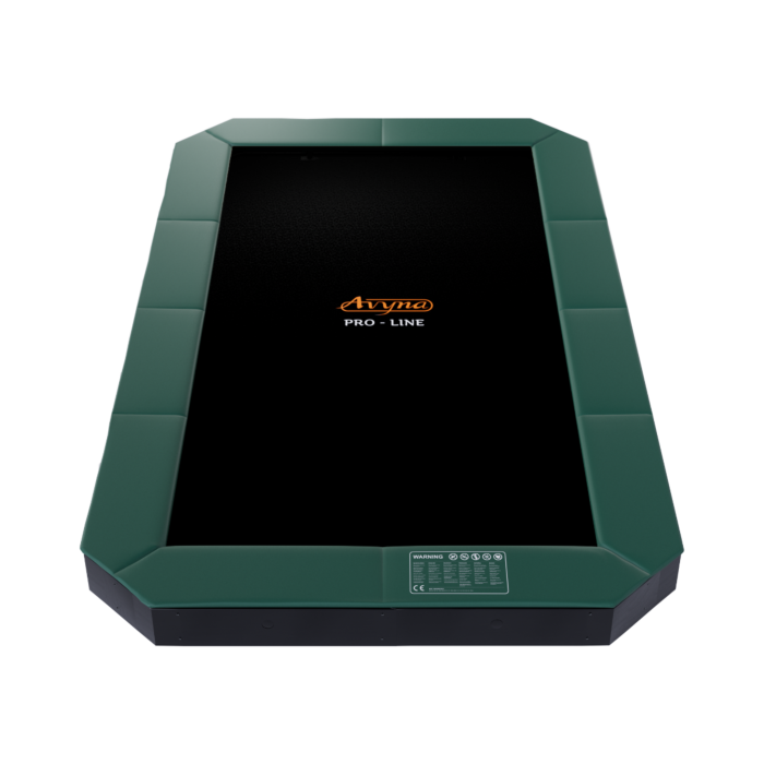 Deze FlatLevel trampoline is met zijn afmeting 5,20x3,05 de allergrootste in ons assortiment. Deze trampoline heeft een groot springoppervlak en maakt jouw tuin compleet. De trampoline heeft een stevige groene rand en is uitgerust met onze vernieuwde Avyna MAX springmat! Deze mat is speciaal ontwikkeld voor onze FlatLevels zodat je nóg beter kunt springen. De matten hebben namelijk een open structuur, waardoor er tot maar liefst 200% meer luchtdoorlating kan plaatsvinden dan bij normale matten. En dit verschil merk je écht tijdens het springen. Op geen enkele trampoline zul je zo fijn springen als op onze FlatLevel trampolines in combinatie met de MAX springmatten. Kortom, deze trampoline is een uitstekende keuze voor de allerbeste springervaring!Avyna verkoopt en produceert al ruim 25 jaar hoogwaardige kwaliteit trampolines. We besteden veel aandacht aan de details en afwerking. Wij bieden zelfs, als enige trampolinemerk, een levenslange garantie op onze trampolineframes. Hier zijn wij enorm trots op. Koop je een trampoline van ons merk Avyna? Dan ben je decennia lang verzekerd van een goede kwaliteit trampoline. Bovendien hebben al onze trampolines een CE markering, zijn EN 7114 gekeurd én bezitten een EN 1176 certificering.Deze trampoline is gekeurd en gecertificeerd en mag gebruikt worden in openbare ruimtes zoals vakantieparken, scholen en instellingen. Benodigde documenten zijn hiervoor op aanvraag.