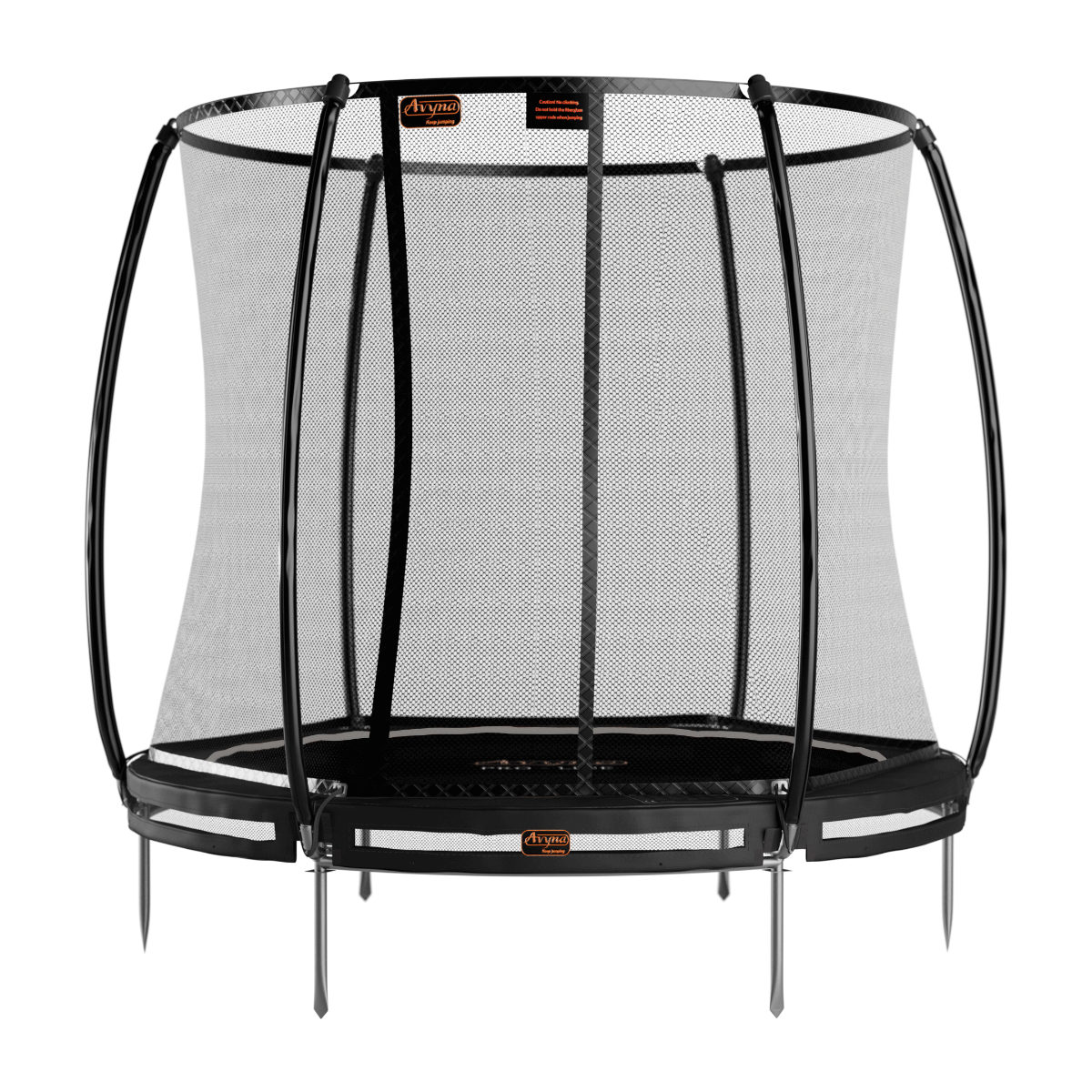 Avyna Pro-Line InGround trampoline met veiligheidsnet 10 Ø305 cm – ZwartDeze ronde InGround (ingraaf) trampoline inclusief veiligheidsnet heeft een diameter van 3,05 meter en is hiermee een mooi formaat voor iedere tuin. De trampoline is gemaakt van hoogwaardig en duurzaam materiaal. Met deze trampoline ben je gegarandeerd van jarenlang springplezier!De trampoline (305 cm in doorsnee) is voorzien van een Royal Class veiligheidsnet voor optimale veiligheid, een zwarte kleur trampoline rand, dubbel gegalvaniseerde veren en een soepele springmat. De stevige rand van de trampoline dekt de veren volledig af en blijft daarnaast netjes liggen bij iedere sprong. Tevens bevat de zwarte rand een oranje rand aan de binnenkant. Hierdoor is het randkussen gemakkelijk te onderscheiden van de zwarte springmat. Zo kan er veilig op de trampoline gesprongen worden De flap van het randkussen valt helemaal over de open ruimte aan de zijkant (20 cm) heen. Zo kan er niets onder de trampoline terecht komen. Ook is de trampoline rand voorzien van luchtroosters voor een optimaal spring comfort. Een super trampoline dus!In tegenstelling tot onze opbouw trampolines zijn InGround (20 cm boven de grond) en FlatLevel (volledig gelijk met de grond) trampolines zijn steeds populairder. Het frame van de trampoline wordt verwerkt in de grond en hiermee maak je de trampoline een geheel met je tuin. Dit heeft een strakke uitstraling! Daarnaast zijn dit soort trampolines ook nog een super veilig vanwege de lage op- en afstap.Al onze Avyna Pro-Line trampolines worden zelf ontworpen en geproduceerd in onze eigen fabriek in Vietnam. Met een Avyna Pro-Line trampoline haal je kwaliteit, veiligheid en duurzaamheid in huis. Dankzij de zware kwaliteit materialen hebben onze trampolines een enorm lange levensduur. Dit is zeker iets waar we trots op zijn. Om die reden bieden we, in tegenstelling tot andere trampoline merken dan ook levenslangs garantie op het frame van de trampoline. Bovendien zijn onze trampolines uitstekend afgewerkt en besteden we veel aandacht aan de kleine details, zoals de stiksels. Dit bij elkaar opgeteld, zorgt ervoor dat Avyna Pro-Line trampolines tot het hoge segment behoren. Uiteraard voldoet ons assortiment trampolines aan de laatste veiligheidseisen. In Amerika zijn ze zelfs als beste getest.