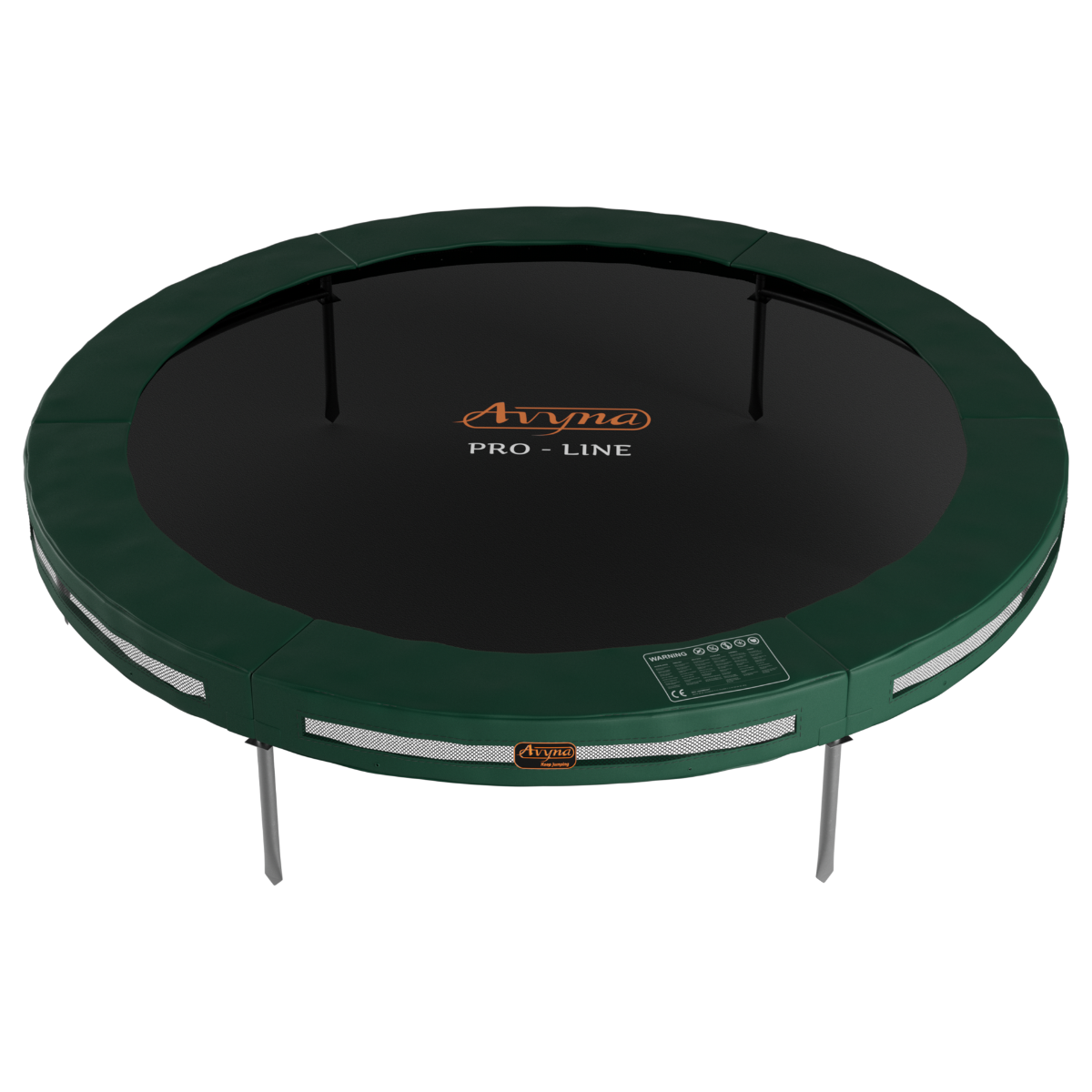 Avyna Pro-Line InGround trampoline 08 Ø245 cm – GroenDeze ronde InGround (ingraaf) trampoline heeft een diameter van 2,45 meter en is hiermee de kleinste InGround trampoline in ons assortiment. In tegenstelling tot onze opbouw trampolines zijn InGround (20 cm boven de grond) en FlatLevel (volledig gelijk met de grond) trampolines zijn steeds populairder. Het frame van de trampoline wordt verwerkt in de grond en hiermee maak je de trampoline een geheel met je tuin. Dit heeft een strakke uitstraling! Daarnaast zijn dit soort trampolines ook nog een super veilig vanwege de lage op- en afstap.Deze InGround trampoline 08 is voorzien van een groene trampoline rand, dubbel gegalvaniseerde veren en een soepele springmat. De stevige rand van de trampoline dekt de veren volledig af en blijft daarnaast netjes liggen bij iedere sprong. De flap van het randkussen valt helemaal over de open ruimte (20 cm) heen. Zo kan er niets onder de trampoline terecht komen. Ook is de trampolinerand voorzien van luchtroosters voor een optimaal spring comfort. De trampoline is gemaakt van hoogwaardig materiaal en is uitstekend afgewerkt met veel aandacht voor de kleine details. Hierdoor behoren onze trampolines tot het hoge segment trampolines.Al onze Avyna Pro-Line trampolines worden zelf ontworpen en geproduceerd in onze eigen fabriek in Vietnam. We gebruiken hoogwaardig materiaal en op die manier streven we naar hoge kwaliteit, veiligheid en duurzaamheid. Zo leveren wij, in tegenstelling tot andere trampolinemerken, een levenslange garantie op het frame van de trampoline. Daarnaast voldoen al onze trampolines aan de veiligheidseisen. In Amerika zijn onze Pro-Line trampolines zelfs als veiligste én beste getest. Met onze trampolines ben je in ieder geval verzekerd van jarenlang speelplezier!