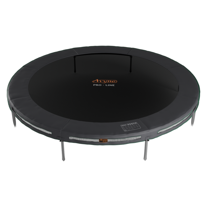 Avyna Pro-Line InGround trampoline set 14 Ø430 cm – Grijs    Deze ronde InGround (ingraaf) trampoline heeft een diameter van 4,30 meter en is hiermee de allergrootste ronde Avyna Pro-Line trampoline in ons assortiment. Ben je op zoek naar een grote trampoline? Stop dan met zoeken en ga voor deze gave InGround met een diameter van 430 cm. In tegenstelling tot onze FlatLevel trampolines, komt deze InGround trampoline nog ongeveer 20 cm boven de grond uit. Verder is deze InGround trampoline gemaakt van hoogwaardig en duurzaam materiaal. Kortom, met deze trampoline ben je jarenlang verzekerd van springplezier!De trampoline (430 cm in doorsnee) is voorzien van een grijze trampoline rand, dubbel gegalvaniseerde veren en een soepele springmat. De stevige rand van de trampoline dekt de veren volledig af en blijft daarnaast netjes liggen bij iedere sprong. Extra veilig dus. De zijkant (skirt) van het randkussen valt volledig langs de open ruimte (20 cm) heen. Zo kan er niets onder de trampoline terecht komen. Het randkussen is ook voorzien van luchtroosters voor een optimaal springcomfort. Onze InGround (20 cm boven de grond) en FlatLevel (volledig gelijk met de grond) trampolines zijn steeds populairder. Het frame van deze trampolines wordt verwerkt in de grond. Dit zorgt voor een strakke uitstraling omdat de trampoline zo een geheel wordt met de tuin. Ook zijn deze trampolines super veilig vanwege de lage op- en afstap.Al onze Avyna Pro-Line trampolines worden zelf ontworpen en geproduceerd in onze eigen fabriek in Vietnam. Met een Avyna Pro-Line trampoline haal je kwaliteit, veiligheid en duurzaamheid in huis. Dankzij de zware kwaliteit materialen hebben onze trampolines een enorm lange levensduur. Dit is zeker iets waar we trots op zijn. Om die reden bieden we, in tegenstelling tot andere trampoline merken dan ook levenslangs garantie op het frame van de trampoline. Bovendien zijn onze trampolines uitstekend afgewerkt en besteden we veel aandacht aan de kleine details, zoals de stiksels. Dit bij elkaar opgeteld, zorgt ervoor dat Avyna Pro-Line trampolines tot het hoge segment behoren. Uiteraard voldoet ons assortiment trampolines aan de laatste veiligheidseisen. In Amerika zijn ze zelfs als beste getest.
