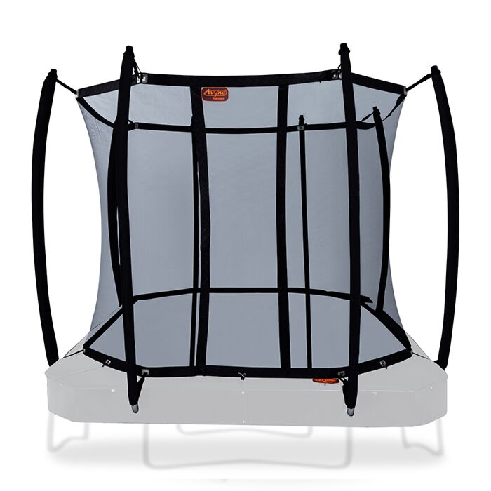 Royal Class veiligheidsnet incl. palen voor Avyna Pro-Line trampoline 238  â€“ 380x255 cm - ZwartIs het veiligheidsnet van je trampoline aan vervanging toe? Dit veiligheidsnet met gebogen palen (bended poles) is geschikt voor de rechthoekige Avyna Pro-Line trampoline 238 (Opbouw, inGround & FlatLevel) met een afmeting van 380 x 255 cm.Het Royal Class veiligheidsnet is enorm stevig. Zelfs bij opzettelijk springen in het net kantelt deze niet. De buizenframes van onze veiligheidsnetten worden gemaakt van dezelfde kwaliteit staal als het frame van onze trampolines. Onze netten zijn weersbestendig en hebben een afsluitbare ingang. Kleur van het net is zwart. Het veiligheidsnet is 180 cm hoog en heeft 8 palen.