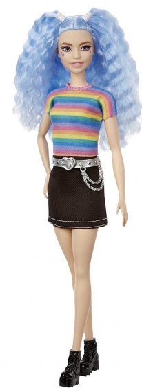 Het regenboog patroon en de blauwe kleur geven deze Barbie Fashionista pop een unieke uitstraling. Het ontwerp is zorgvuldig vormgegeven voor realistisch spelen en stijlvol plezier.