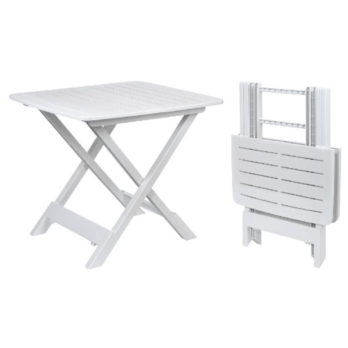 Het vouwbare ontwerp van de tafel maakt het gemakkelijk om mee te nemen en op te bergen. De witte kleurstelling geeft een frisse uitstraling en past goed bij diverse buitenomgevingen.
