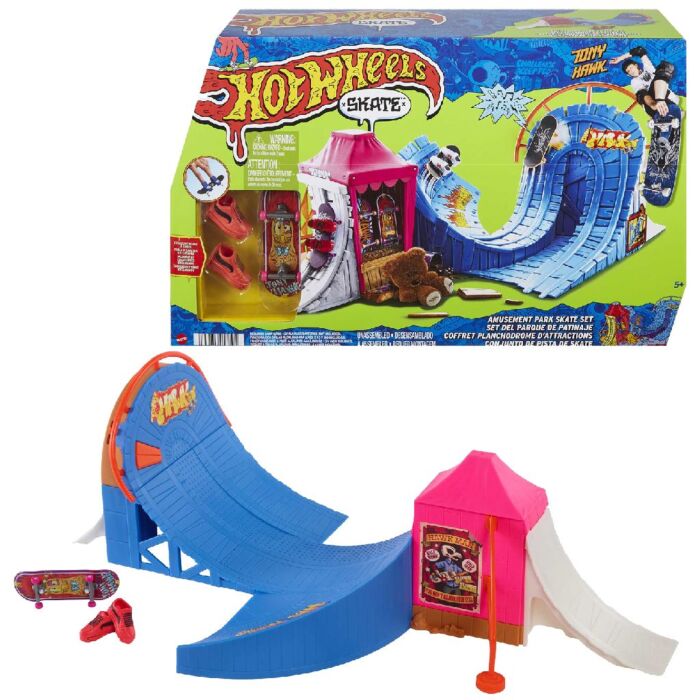 - De Hot Wheels Skate Pretpark Skate Set is de ideale skatebestemming met uitdagende obstakels, gave ontwerpen en door skating geactiveerde geluiden voor extra spanning.