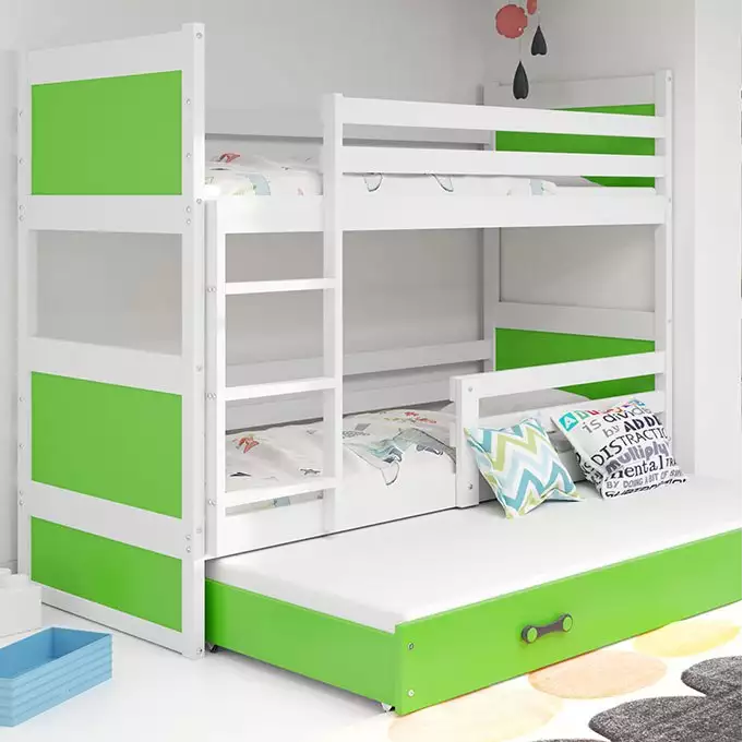 RICO triple youth bed 90X200 with mattress and drawer, white/green