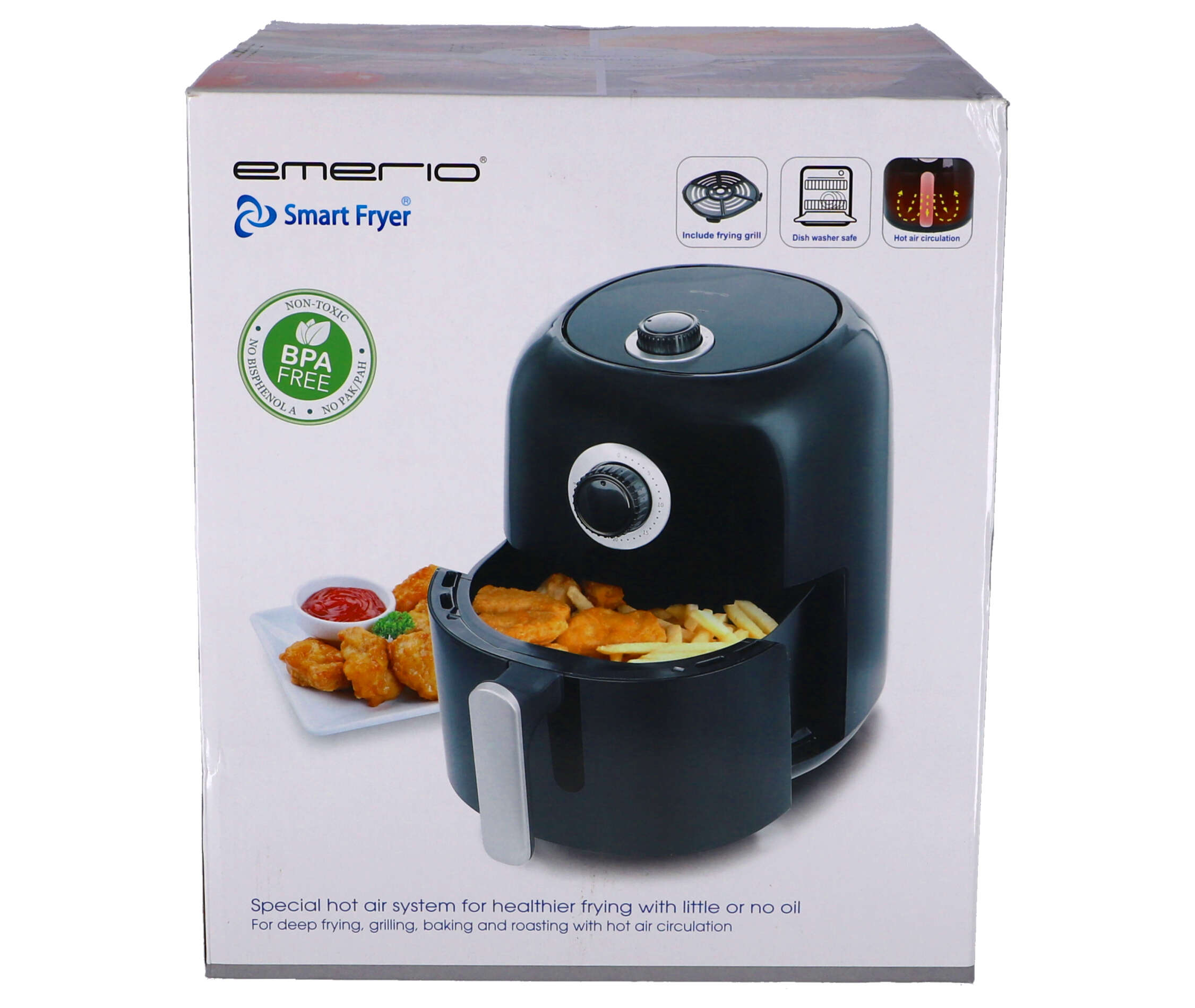 De Emerio Smart Fryer AF-125770 is een innovatieve air fryer die gezonde en knapperige gerechten bereidt met weinig tot geen olie. Met een inhoud van 3,2 liter is deze fryer ideaal voor het bereiden van maaltijden voor het hele gezin. Of je nu frietjes, kip of groenten wilt bereiden, deze fryer biedt een veelzijdige oplossing voor elke gelegenheid.