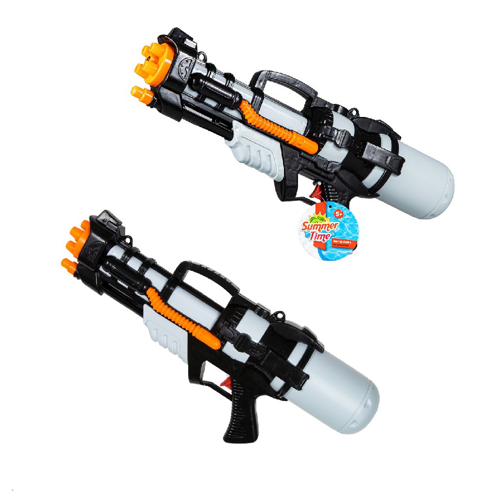 Het Summertime waterpistool L is het perfecte speelgoed voor de warme zomerdagen. Dit waterpistool, met een opvallende kleurencombinatie van oranje, zwart en grijs, biedt niet alleen plezier, maar ook een veilige speelervaring voor kinderen vanaf 5 jaar. Het innovatieve Power release pomp mechanisme zorgt ervoor dat je snel en gemakkelijk lange straal afvuren kunt, perfect voor spannende watergevechten.