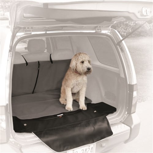 De Cargo Cape beschermt je interieur met verhoogde randen en voorkomt dat vuil en water op de vloerbedekking komt. Waterdicht, vlekbestendig en wasbaar in de machine. Waterdichte Rufftex bumperbeschermer kan omhoog geklapt worden of neergeklapt en heeft een reflecterende afwerking. De Cargo Cape heeft een gedeelde rits voor zitplaatsen die omhoog of omlaag zijn geklapt. Heeft meerdere bevestigingspunten om er voor te zorgen dat cape niet weg glijd en zorgt voor een comfortabel en stabiele plek voor uw hond tijdens het rijden.
