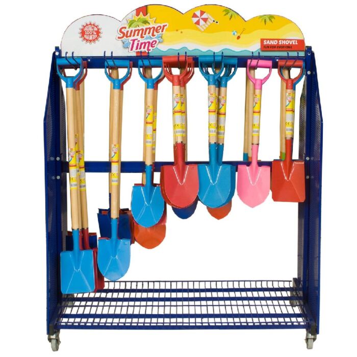 De Summertime Scheppen Display is voorzien van 14 haken, die het mogelijk maken om de spaden veilig en overzichtelijk op te hangen. Het ontwerp is functioneel en gericht op het optimaliseren van winkelpresentaties, zodat klanten eenvoudig de spaden kunnen bewonderen en selecteren.