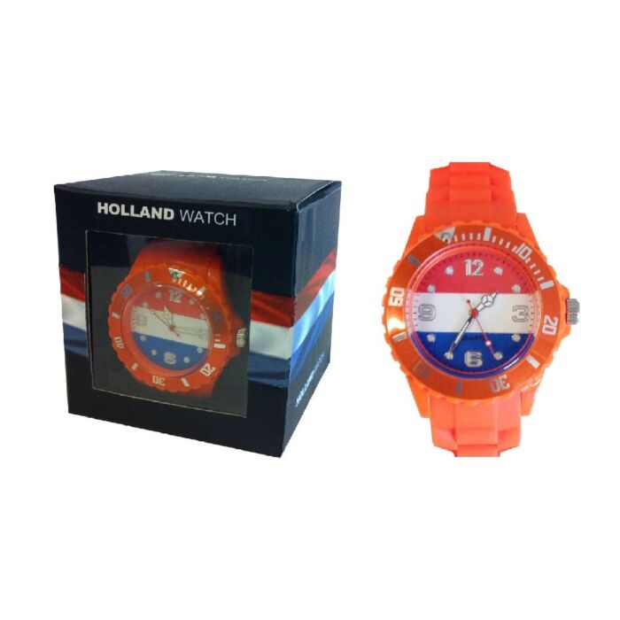 - Hip horloge met oranje band en klokje met Hollandse vlag