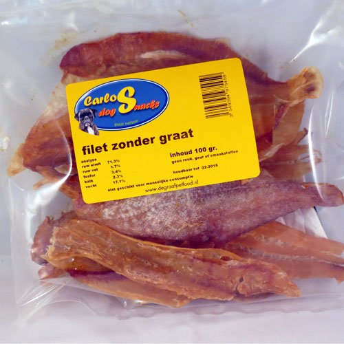 De hond zal smullen van deze smakelijke en krokante stukken witvisfilet zonder graat. De visfilets zijn gemaakt van 100% vis en zitten boordevol met aminozuren. Bevat geen reuk, geur of smaakstoffen.