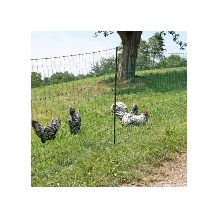 Deze afrastering met stroomdoorvoerende draden is ideaal om uw pluimvee binnen de gewenste afzetting bij elkaar houden. Geschikt voor het houden van kippen, ganzen, kalkoenen enzovoort.