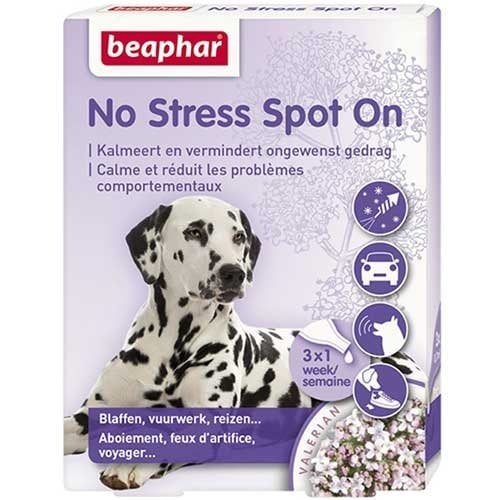 Beaphar No Stress druppels kalmeren, stimuleren goed gedrag en verminderd stress bij honden. Deze druppels bevatten Valeriaan-extract wat van nature een middel is met een kalmerende werking. Het micro-ingekapselde extract komt langzaam vrij waardoor het langdurig werkzaam is. Beaphar No Stress is geschikt voor alle hondenrassen van alle leeftijden.