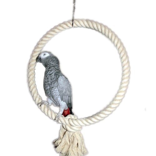 Deze speelring voor papegaaien heeft een dikte van 2,5cm en is vervaardigd uit katoen. Je papegaai kan hier lekker op schommelen en tegelijkertijd met de speel flos spelen.