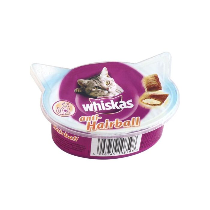 Whiskas Anti-Hairball is een kattensnack die behalve erg smaakvol ook zeer functioneel is. Veel katten hebben namelijk last van haarballen. Door middel van de anti-hairball van Whiskas kan de vorming van haarballen tot wel 66% gereduceerd worden