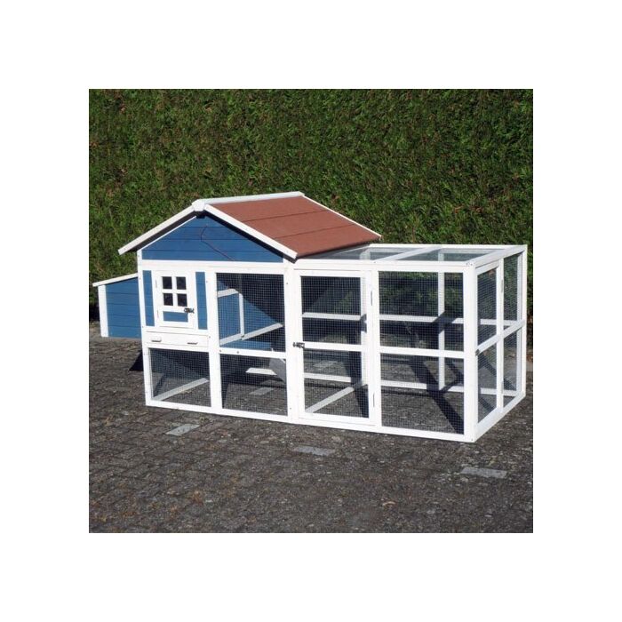 Kippenhok Calypso Blauw/Wit met extra ruime legkast en ruime ren