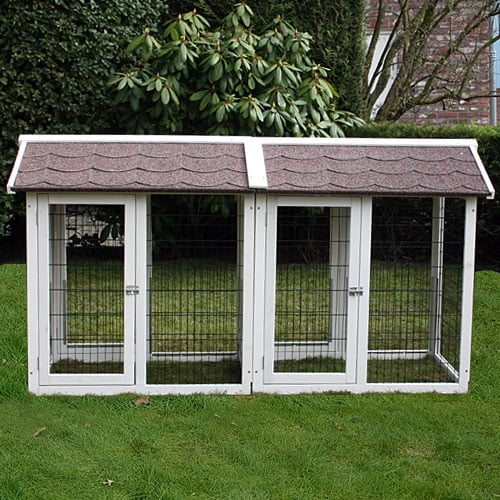 Konijnenren Sissi Duo is een mooie en ruime konijnenren voorzien van een bitumen dak. Hierdoor zijn de konijnen beschermt van de zon, slecht weer en roofdieren van bovenaf. De ren is ook te combineren met ons konijnenhok Sissi.