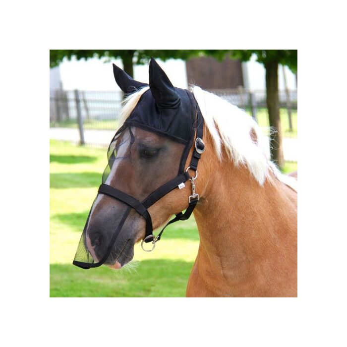 Dit handige halster is direct voorzien van een vliegenmasker. Het beschermt je paard tegen vliegen, dazen en andere insecten rondom het hoofd.