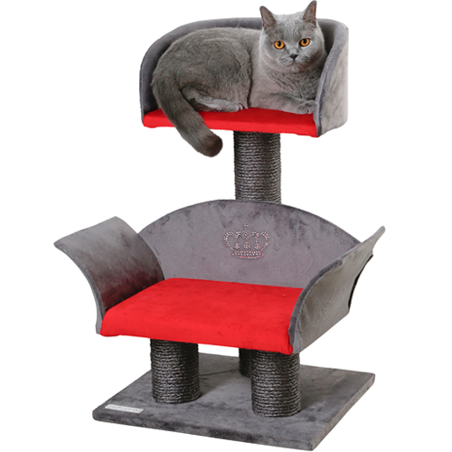 Deze sjieke krabpaal heeft een mooie kroonapplicatie op de rugleuning en twee heerlijke ligplekken. Een bescheiden krabpaal met een mooie uitstraling en genoeg mogelijkheden