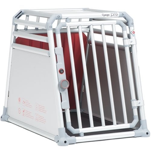 Het slot is uitgerust met een zogenaamd “Double Dock“ systeem. Dit maakt dat de deur nooit naar binnen kan vallen in geval van bijvoorbeeld een crash. Het “Safelock Systeem” maakt het daarnaast mogelijk de box vlot te openen, zonder dat de hond zelf de deur kan openen.