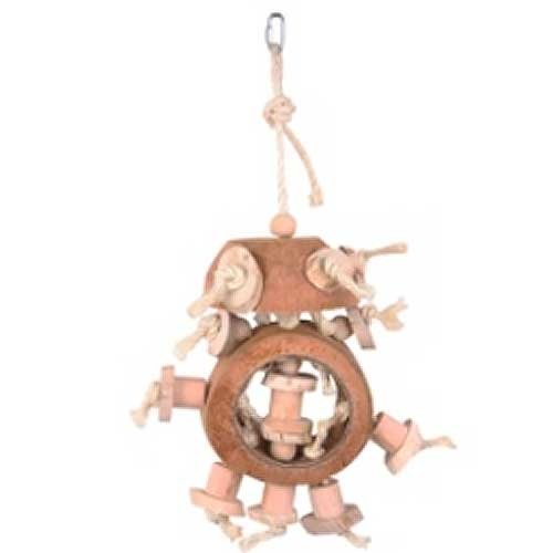 Dit leuke papegaaienspeeltje is ideaal voor de kleine en middelgrote papegaaien. De natuurlijke gebruikte materialen zorgen voor veel speelplezier. Het speeltje heeft de vorm van een mannetje en is heel gevarieerd.