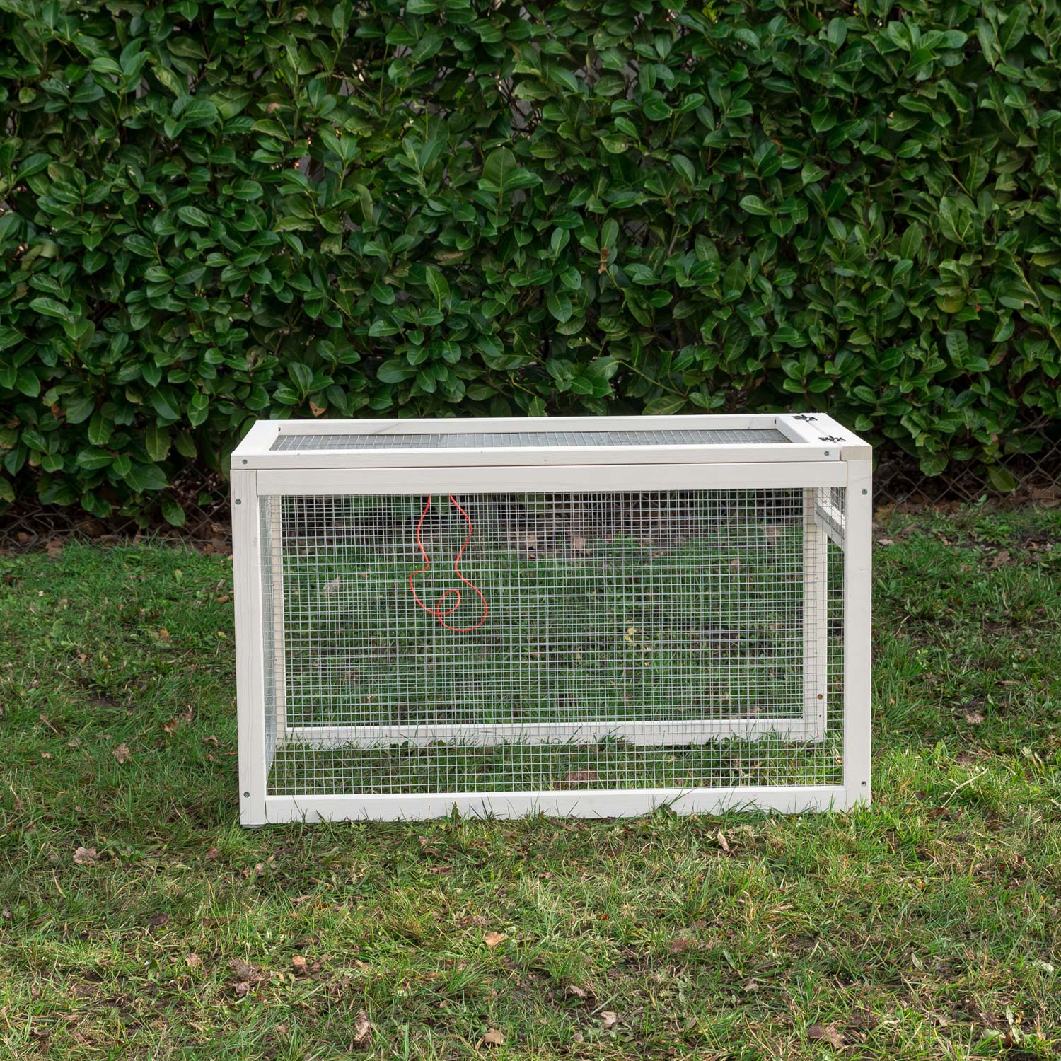 De ren beschikt over een openklapbare bovenkant zodat je altijd gemakkelijk bij de konijnen kan.