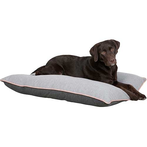 Hondenkussen Kodiak is een stevig gevuld hondenkussen voor optimaal ligcomfort. Het kussen is zowel met de lichtgrijze als donkergrijze kant boven te gebruiken. De twee kleuren zijn mooi gescheiden met een contrasterende bies.