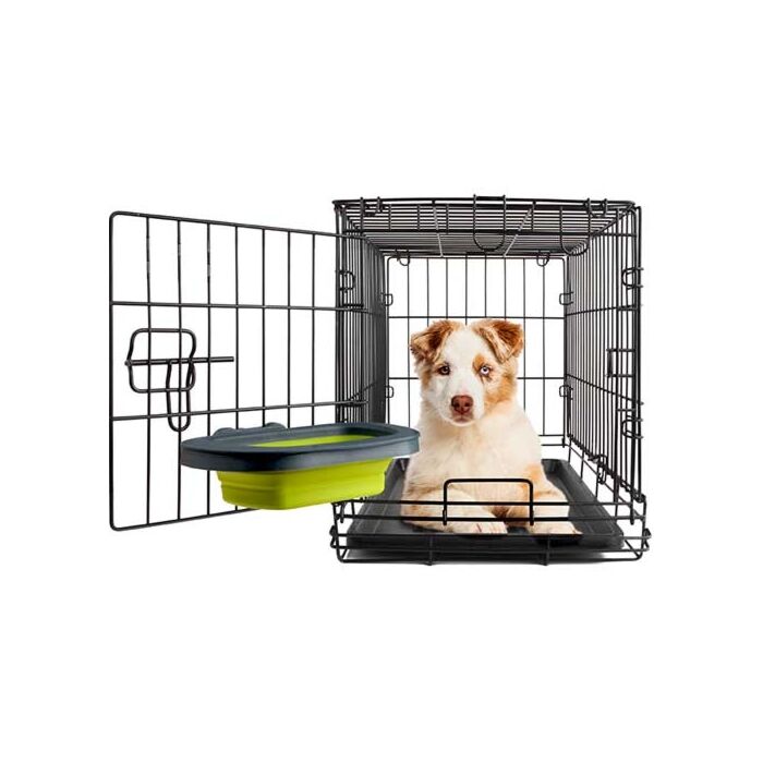 Deze handige uitklapbare Drink- of voerbak is eenvoudig op te hangen aan elke bench door middel van een stevige draaiknop. De drinkbak bespaart ruimt in de bench en je hond kan hem niet omstoten. Handig voor thuis of onderweg