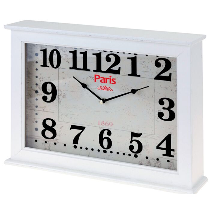 Home & Styling Wand / tafelklok "Paris" 40x30x8cm (wit) (DSS-DS57752-WIT)