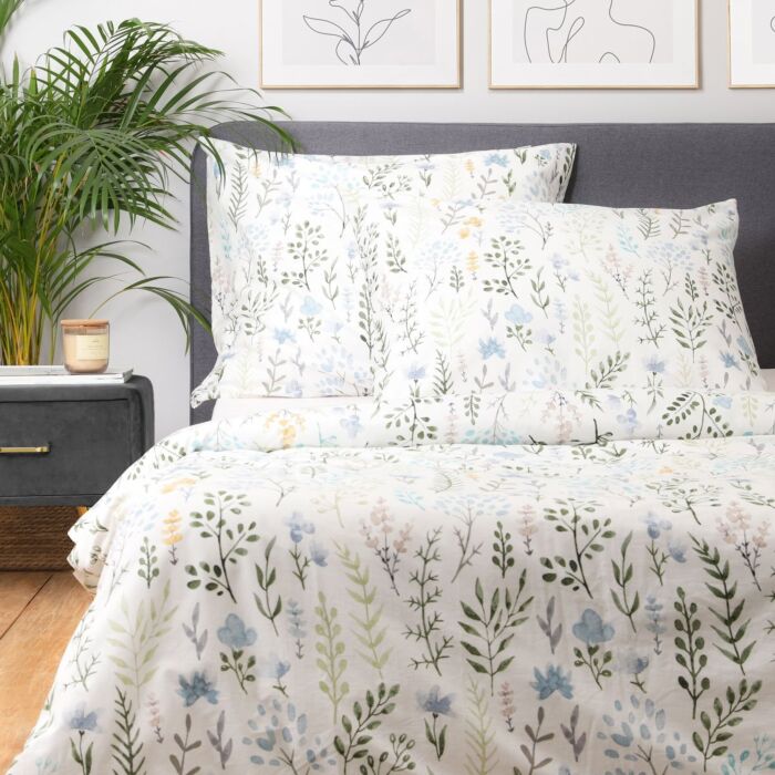 Het ontwerp van de FORE dekbedset straalt een verfijnde eenvoud uit. De bloemen en takken in gedempte kleuren zijn zorgvuldig geplaatst op een heldere witte achtergrond, wat een prachtig visueel effect creëert. De rits zorgt voor extra gemak bij het verzorgen van het beddengoed.