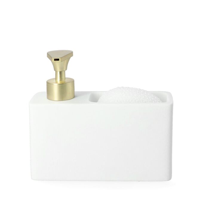 Dozownik TEANA został utrzymany w białej kolorystyce, posiada również złotą pompkę - połączenie tych kolorów zapewnia niezwykłą elegancję. Dozownik TEANA ma prostokątny kształt. Jego dużym atutem jest to, że zawiera kieszeń na gąbkę lub drobne akcesoria, które możesz mieć na wyciągnięcie ręki. Doskonale odnajdzie się w łazienkach zarówno tradycyjnych oraz nowoczesnych.