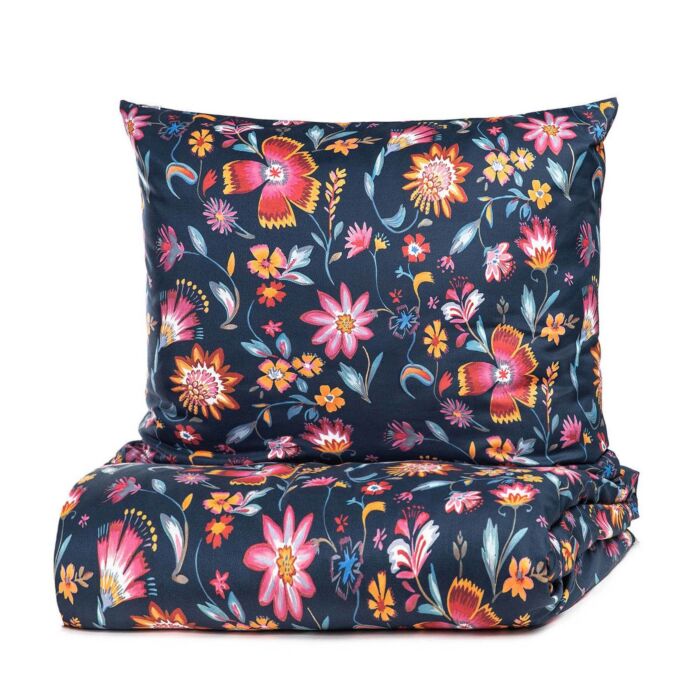 Het beddengoedset VABEL is een product dat liefhebbers van decoratieve elementen zal aanspreken, vooral degenen die genieten van levendige kleuren en bloemmotieven. De combinatie van marineblauw met een scala aan kleuren, vormen en maten van bloemen geeft een opvallend resultaat dat perfect past in eclectische stijl interieurs.