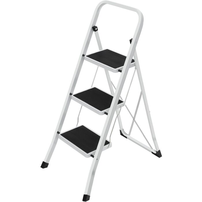 Hoppa! Songmics 3-treden ladder, vouwladder, sportbreedte 20 cm, antislip rubber, met handvat, draagvermogen 150 kg, staal, GS-gecertificeerd, zwart en wit