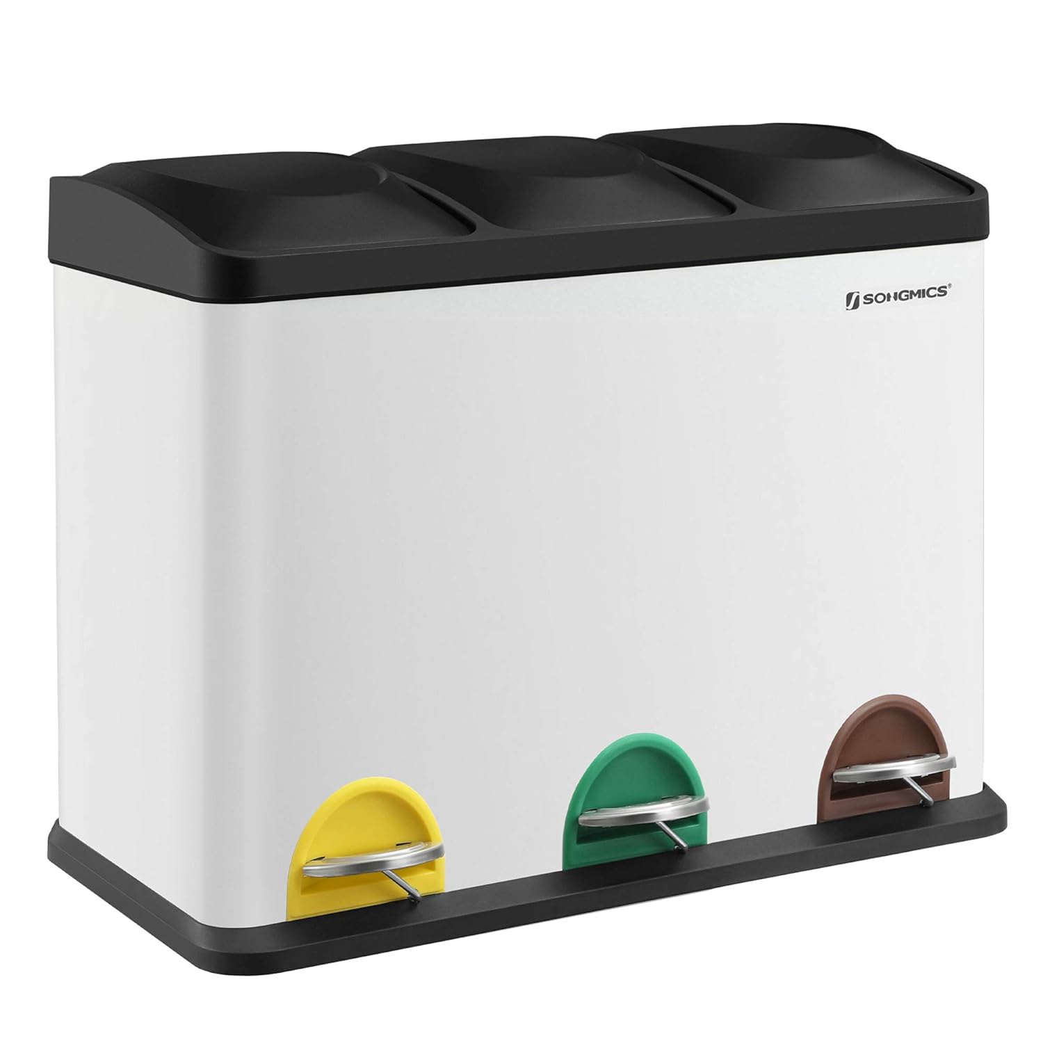 U plaatst een review over: Afvalbak voor de keuken, afvalbak, 45 liter, afvalbak met binnenbak, afvalscheidingssysteem, pedaalemmer van roestvrij staal, 3 x 15 liter, wit-zwart