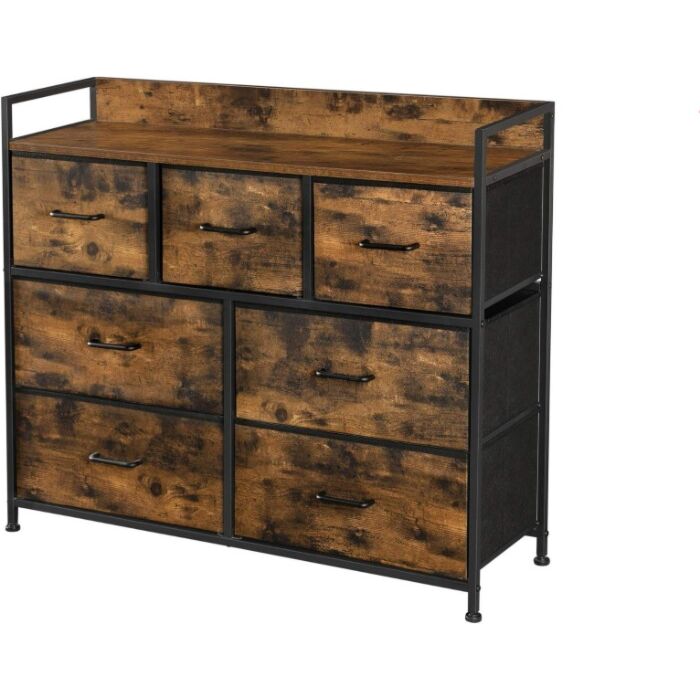 Hoppa! Songmics Commode, kast, 7 stoffen laden met handgrepen, metalen frame, industrieel design, vintage bruin-zwart