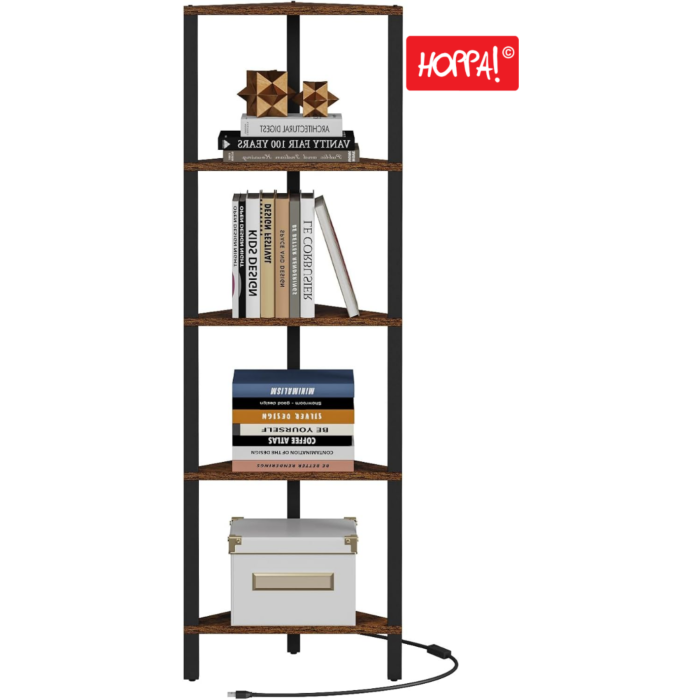 Hoppa! Songmics Hoekkast met LED-licht, 6-laags boekenkast voor kleine ruimte, bruin