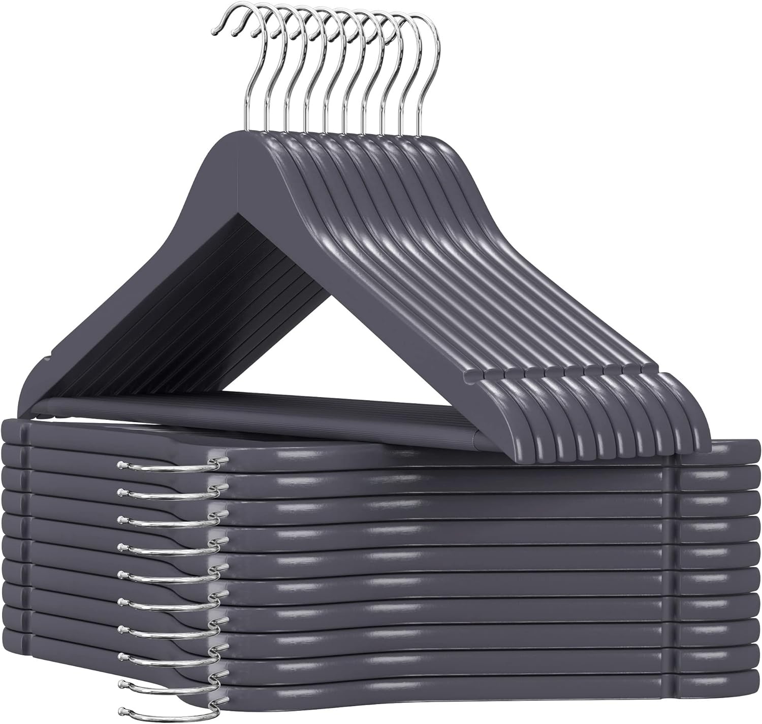 Deze elegante massief houten hangers hebben een glad, met de hand gepolijst oppervlak dat je kleding niet beschadigt, waardoor ze in topvorm blijven