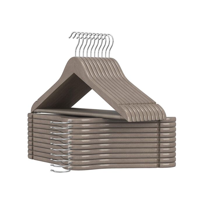 Specifications: Colour: Greige Material: Maple Wood, Chrome-Plated Hook Size of Single Hanger: 44.5 x 1.2 x 23 cm (L x W x H) Product Weight: 2.5 kg Max. Static Load Capacity of Single Hanger: 5 kg Package Contents: 20 x Coat Hanger