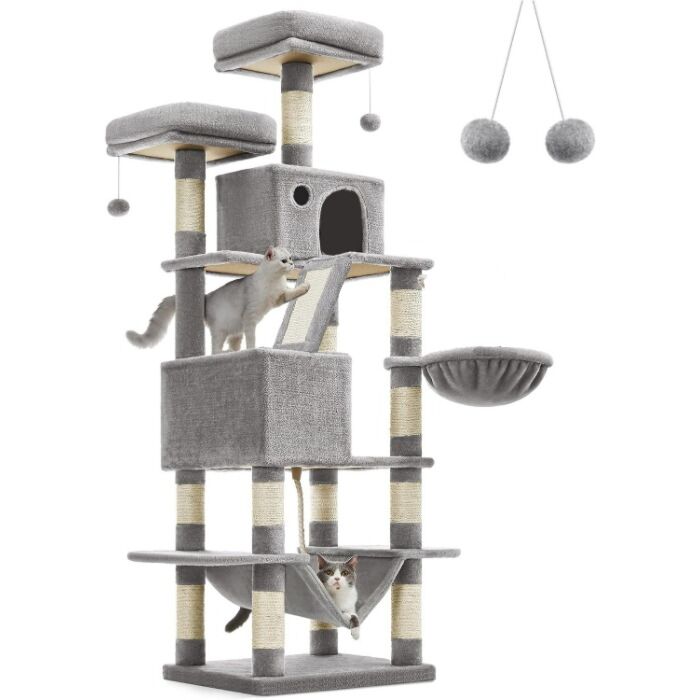 U plaatst een review over: Hoppa! Songmics Krabpaal, 168 cm hoge krabpaal met 13 krabpalen, 1 krabhelling, 2 platforms, 2 grotten, mand, hangmat, pompons, kattenkrabpaal