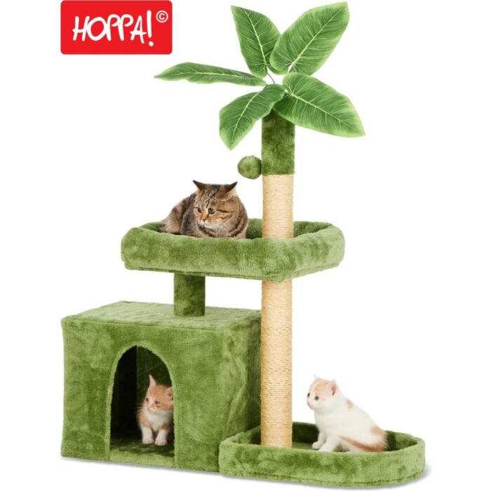 U plaatst een review over: Hoppa! Songmics Krabpaal / Kattenboom / Kattentoren / Kattenhuis voor binnenkatten met hangmat en bladvormig ontwerp - 80 cm x 77 cm x 36 cm (LxBxH) -Groen