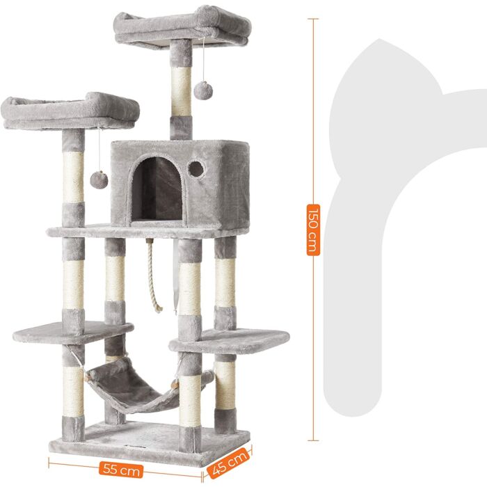 Krabpaal, krabpaal met haarballen, 150 cm, lichtgrijs