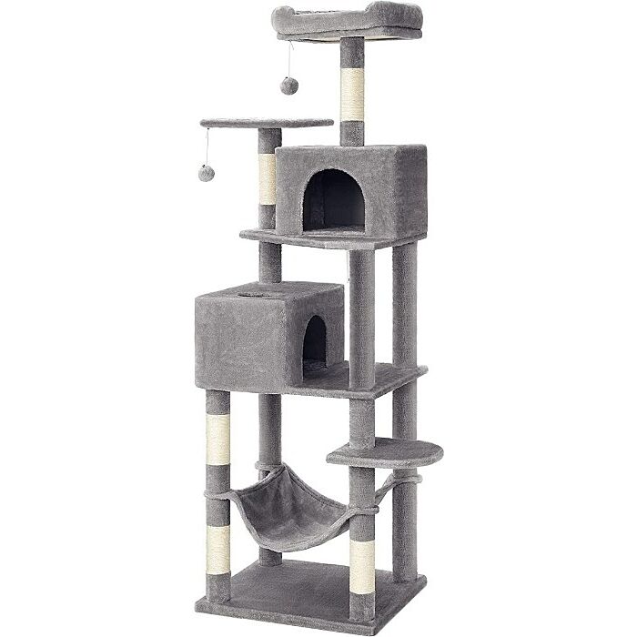 Veel plezier: met een hoogte van 191 cm biedt deze krabpaal je harige vrienden voldoende ruimte om te klimmen, te ontspannen, hun klauwen te slijpen en de omgeving te observeren <br>Zo comfortabel! Ontspan in de zachte hangmat, kom tot rust op het pluizige platform, kruip in de knuffelige grot - waar je kleine pelsneus ook is, ze zal een geweldige tijd hebben! <br>Hoge stabiliteit: voor een energieke kat? Geen probleem! Deze krabpaal heeft een verstevigde basis en een anti-tip zodat je lieve energiebundel er wild op kan springen <br>Red je bank: dankzij de in sisal gewikkelde stammen is deze krabpaal ideaal voor het slijpen van klauwen, Je huiskat zal hier stoom afblazen - beter dan op je bank, toch? Het meubilair zal je dankbaar zijn! <br>Maak je katten blij: verwen je katten met deze krabpaal zodat ze zich niet eenzaam voelen als je weg bent, maar lekker kunnen spelen en comfortabel kunnen ontspannen