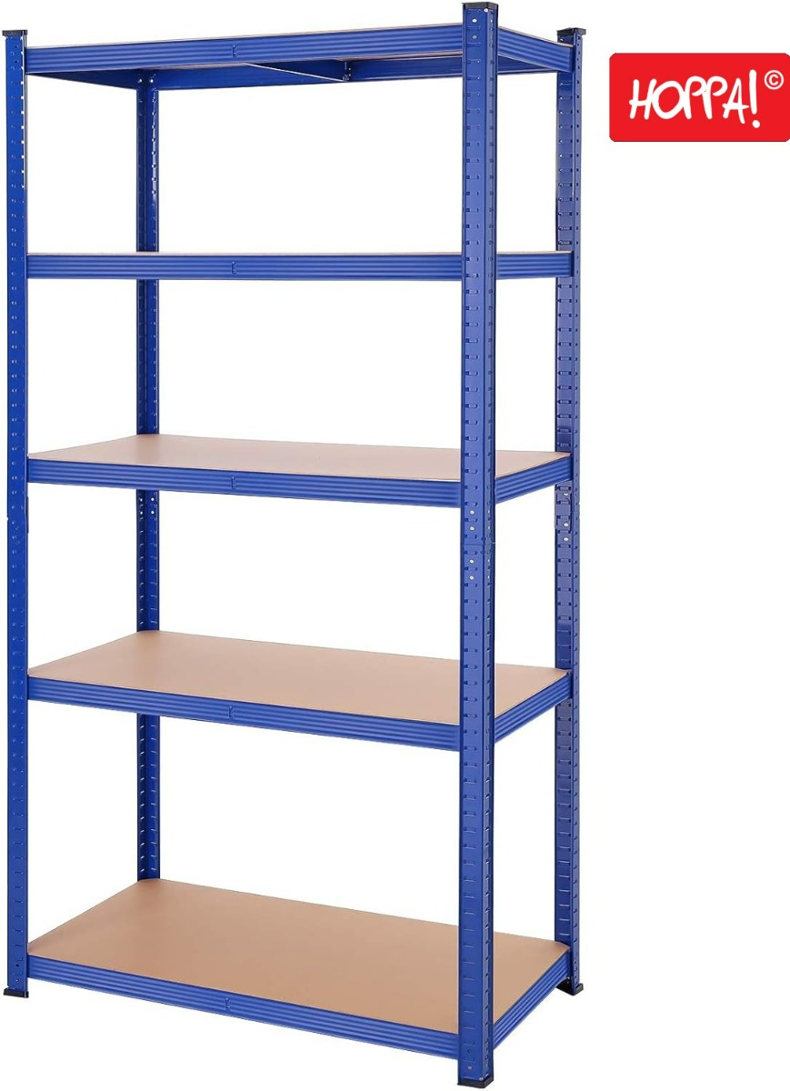 Hoppa! Songmics Magazijnstelling - Opbergrek, stellingkast, werkplaatskast, 100x50x200 cm (BxDxH), belastbaar tot 875 kg (175 kg per plank) - blauw