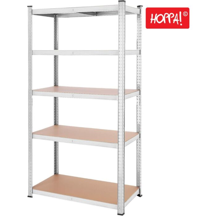 Hoppa! Songmics Magazijnstelling - Opbergrek, stellingkast, werkplaatskast, 100x50x200 cm (BxDxH), belastbaar tot 875 kg (175 kg per plank) - zilver
