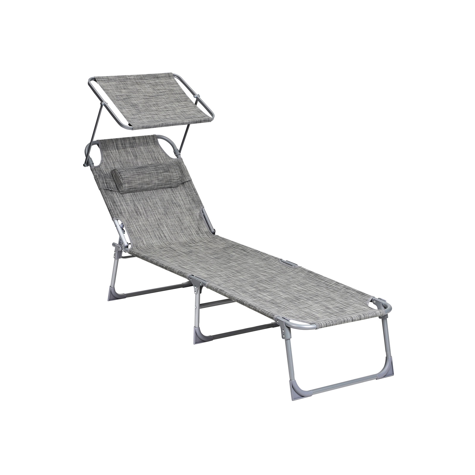 Hoppa! Songmics Verstelbaar Ligbed tuin / Loungebed / Ligstoel / Tuinbed / Zonnebed / tuinligstoel, met hoofdsteun en zonnedak, rugleuning verstelbaar, licht, inklapbaar, 53 x 193 x 29,5 cm, tot 150 kg belastbaar, greige