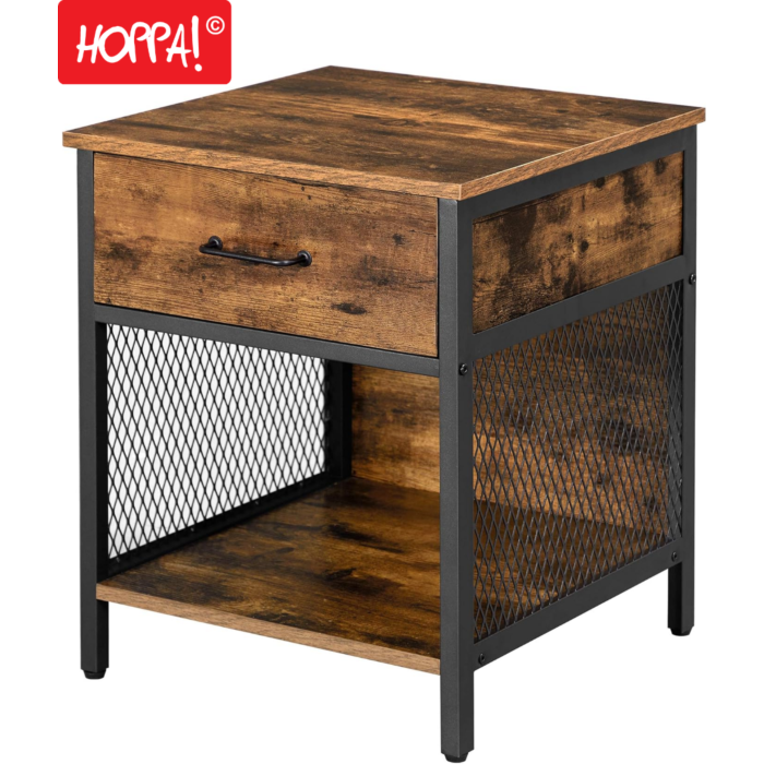 Hoppa! Songmics Nachtkastje, Bijzettafel met 1 Lade - Bruin / Zwart - Spaanplaat / Staal - 45 x 45 x 55 cm