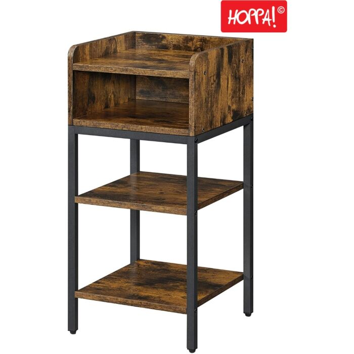Hoppa! Songmics nachtkastje, hoog, met open vak en 2 legplanken, voor slaapkamer, ruimtebesparend, industrieel ontwerp, 35 x 35 x 70 cm, vintage bruin-zwart
