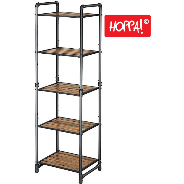 Een mooi opbergrek met 5 planken gemaakt van kunststof met metalen pijpen. Het heeft een industrieel uiterlijk en past in elk interieur.Ā